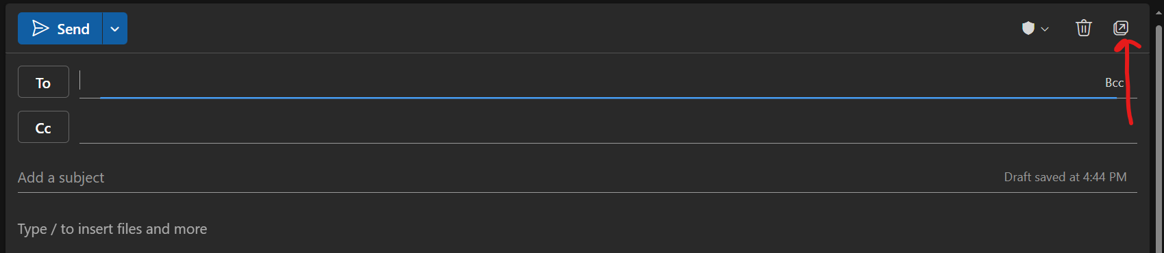 On the right-hand side, the message needs to be opened into a new window. Click the pop out to new window button.