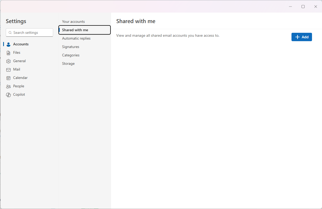 On the left-hand side Menu panel, go to "Accounts" -> "Shared with me" -> "Add"