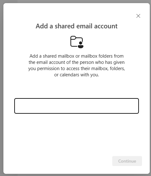 Add the "Shared Email" account in the text field., then Continue.